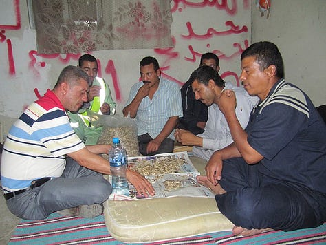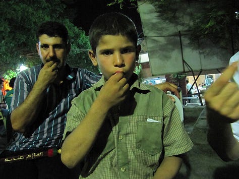 As you may have intuited, Palestine is a seed-eating culture too. In cafes and homes, bizir al-bateekh — watermelon seeds — are snacked upon while playing cards or smoking hookah. When we think of the Palestinian symbol of resistance, perhaps we also imagine its crisp and juicy flesh, its sugar-spiked water running down chins and into clavicles as sweet children quench their thirst in the summer. Let us not forget the nourishment of watermelon seeds either; the millions of insignificant morsels that, when combined, sustain a thousand conversations into the glowering embers of the night, soundtracked by the continuous crackling of a 嗑 嗑 嗑 … çit çit çit…